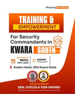 Given the recent kidnapping incidents in Kwara South, Senator Ashiru is working tirelessly to ensure the safety of his constituents. The upcoming training and empowerment program for security commandants demonstrates his commitment to complementing the state government’s efforts towards a safer Kwara.