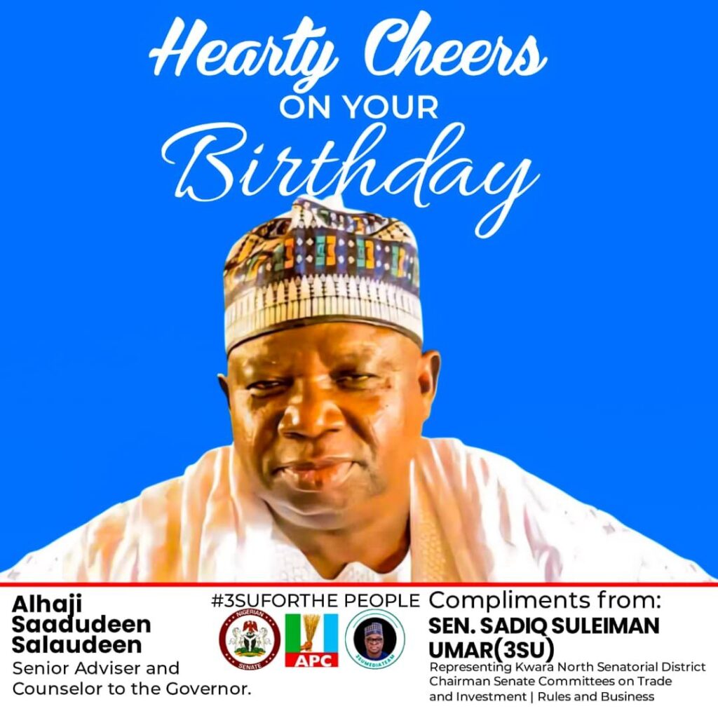 Senator Sadiq Suleiman Umar, representing the Kwara North Senatorial District, has extended his felicitations to Alhaji Salaudeen, the Senior Adviser and Counselor to the Kwara State Governor, as he celebrates his birthday.