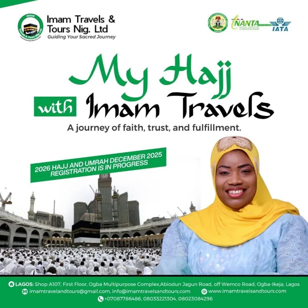 Imam Travels and Tours has announced that registration for the 2026 Hajj is currently in progress.