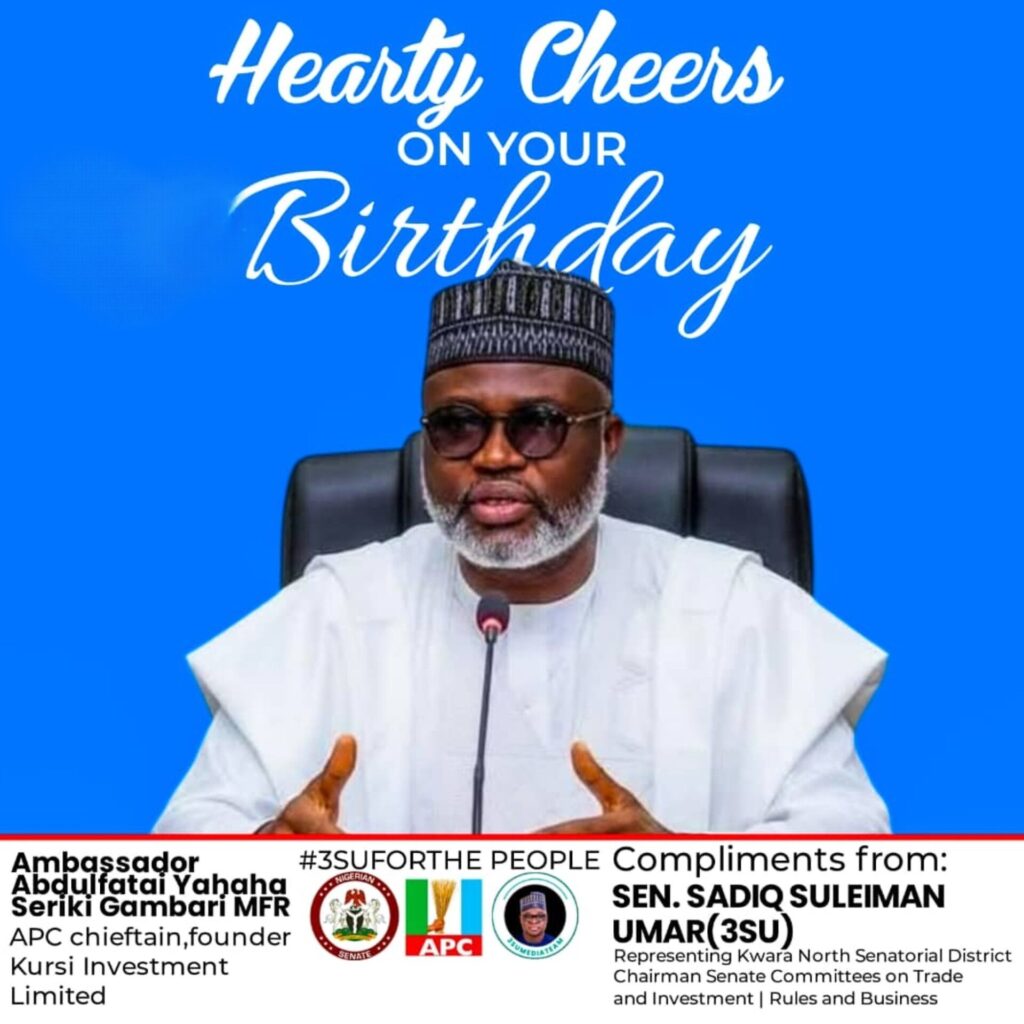Senator Sadiq Suleiman Umar, representing Kwara North Senatorial District, has congratulated Ambassador AbdulFatai Yahaya Seriki (MFR) on his birthday, describing him as a patriotic leader, visionary entrepreneur, and devoted son of Kwara State.