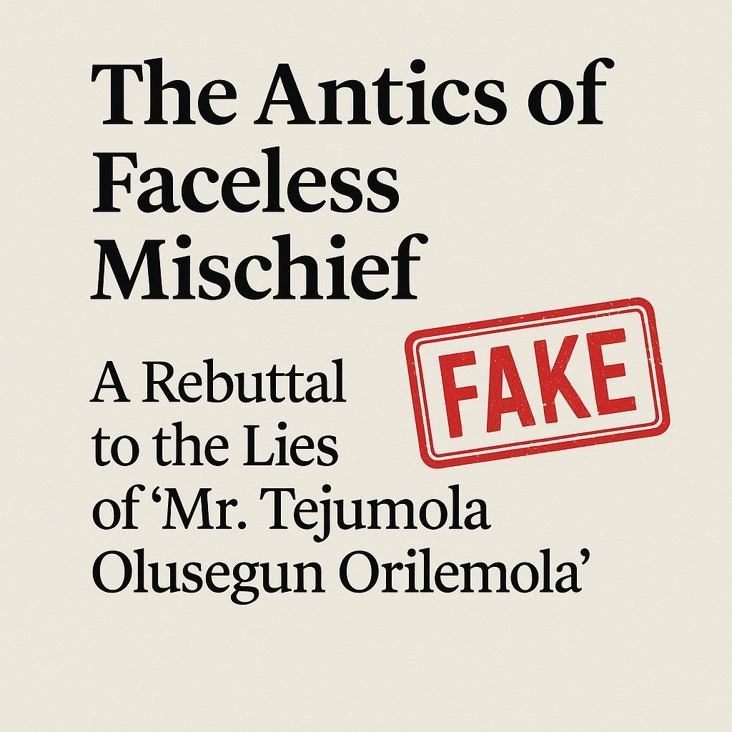 The so-called “Society for Sustainable Governance” and its self-styled convener, Mr. Tejumola Olusegun Orilemola, appear to fall squarely into this category. Indeed, it is doubtful whether such a person or organisation exists beyond the imagination of those who concocted this defamatory narrative. In a society where everyone can freely express opinions, it is unfortunate that some have cowardly chosen to weaponize falsehood as a political tool.