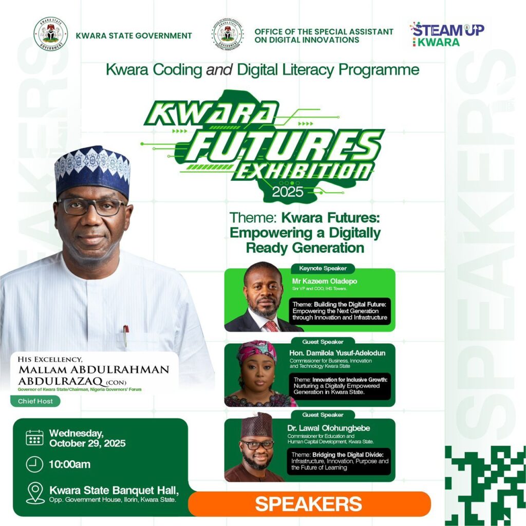 The Kwara Coding Programme Initiative is thrilled to unveil the stellar speaker lineup for the Kwara Futures Exhibition 2025 — a landmark event set to spotlight groundbreaking student innovations and chart the future of technology, education, and youth empowerment in Kwara State.