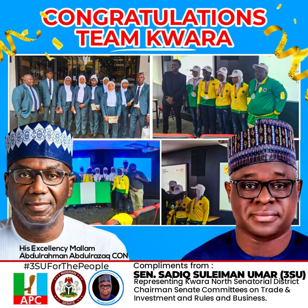 Sen. Sadiq also extended hearty commendations to the leadership and staff of the Kwara State Universal Basic Education Board (Kwara SUBEB), especially its Chairman, Professor Sheu Raheem Adaramaja, alongside the dedicated parents, coaches and technical team. He acknowledged their relentless commitment, hard work, and mentorship which prepared the students for excellence and made this international victory possible.