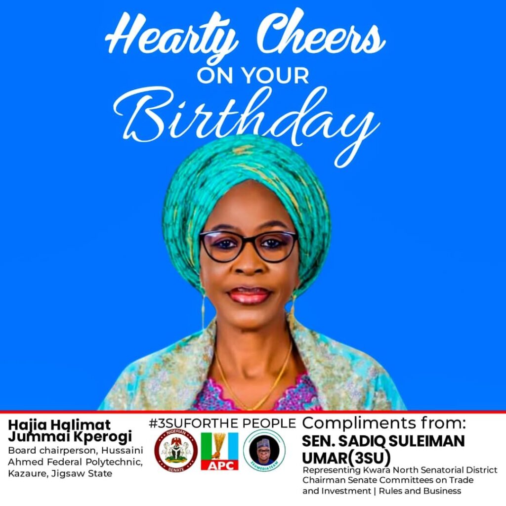 Senator Sadiq Suleiman Umar, representing Kwara North Senatorial District, has extended warm felicitations to Hajia Halimat Jummai Kperogi, Board Chairperson of Hussaini Ahmed Federal Polytechnic, Kazaure, Jigawa State, on the occasion of her birthday anniversary.