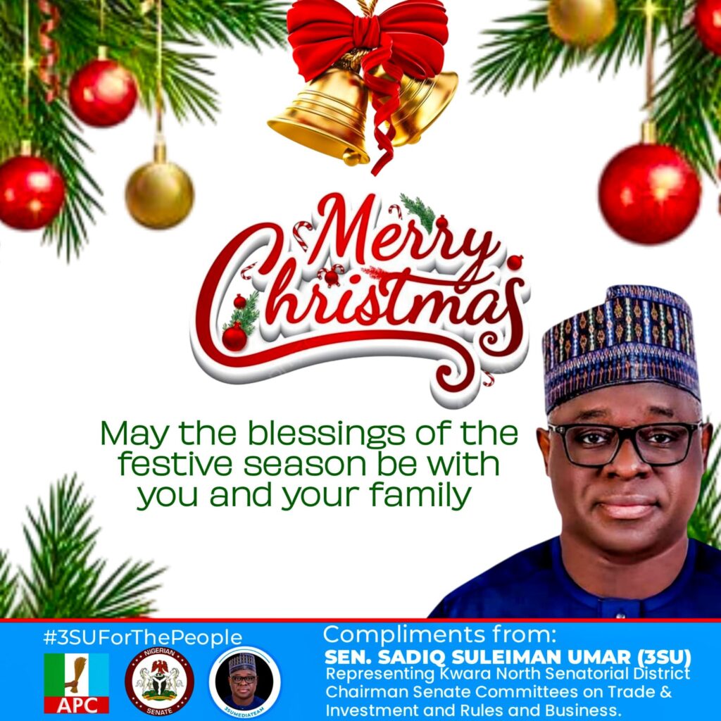 The Senator representing Kwara North Senatorial District, Senator Sadiq Suleiman Umar, has extended warm and heartfelt Christmas greetings to Christians across Kwara North, Kwara State, and Nigeria at large, as they commemorate the birth of Jesus Christ.