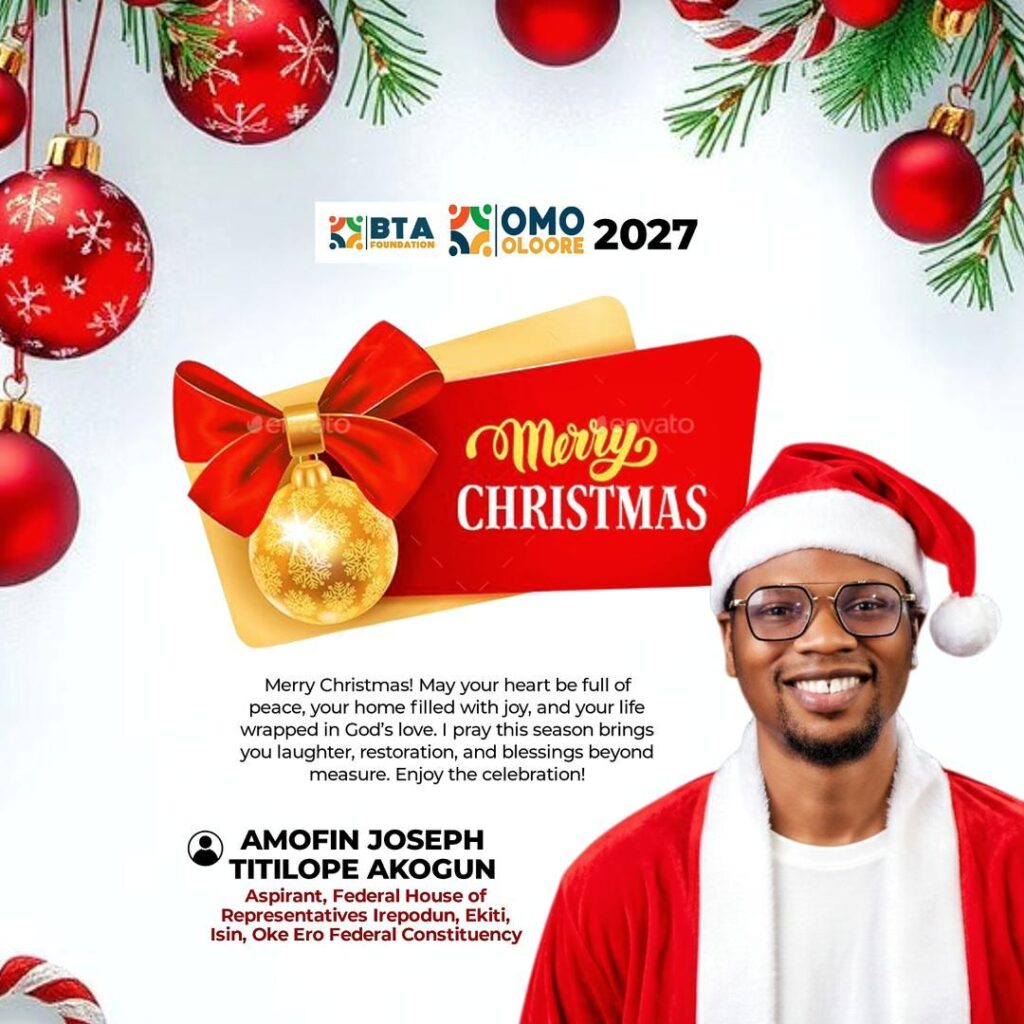 Amofin Akogun warmly wishes the good people of Irepodun, Ekiti, Oke Ero, and Isin Federal Constituency a joyful and peaceful Christmas celebration.