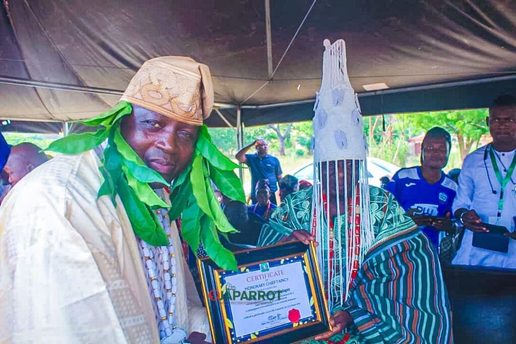 The renowned philanthropist was installed as the Akinrogun of Oba Kingdom by the Oloba of Oba Kingdom, His Royal Majesty, Oba (Dr.) Timothy T. Oyebanji, and simultaneously appointed as the first-ever Cultural Ambassador of Isanlu Isin by the First Class Monarch and Olusin of Isanlu Isin, His Royal Majesty, Oba (Dr.) Solomon Oloyede, JP.