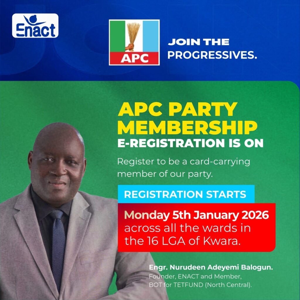 “The APC remains the platform for progressive ideas, people-centred governance, and sustainable development. This e-registration exercise is an open invitation to all well-meaning Kwarans to take their place in a party that is committed to delivering results, empowering citizens, and building a prosperous future for our state and country,” he said.