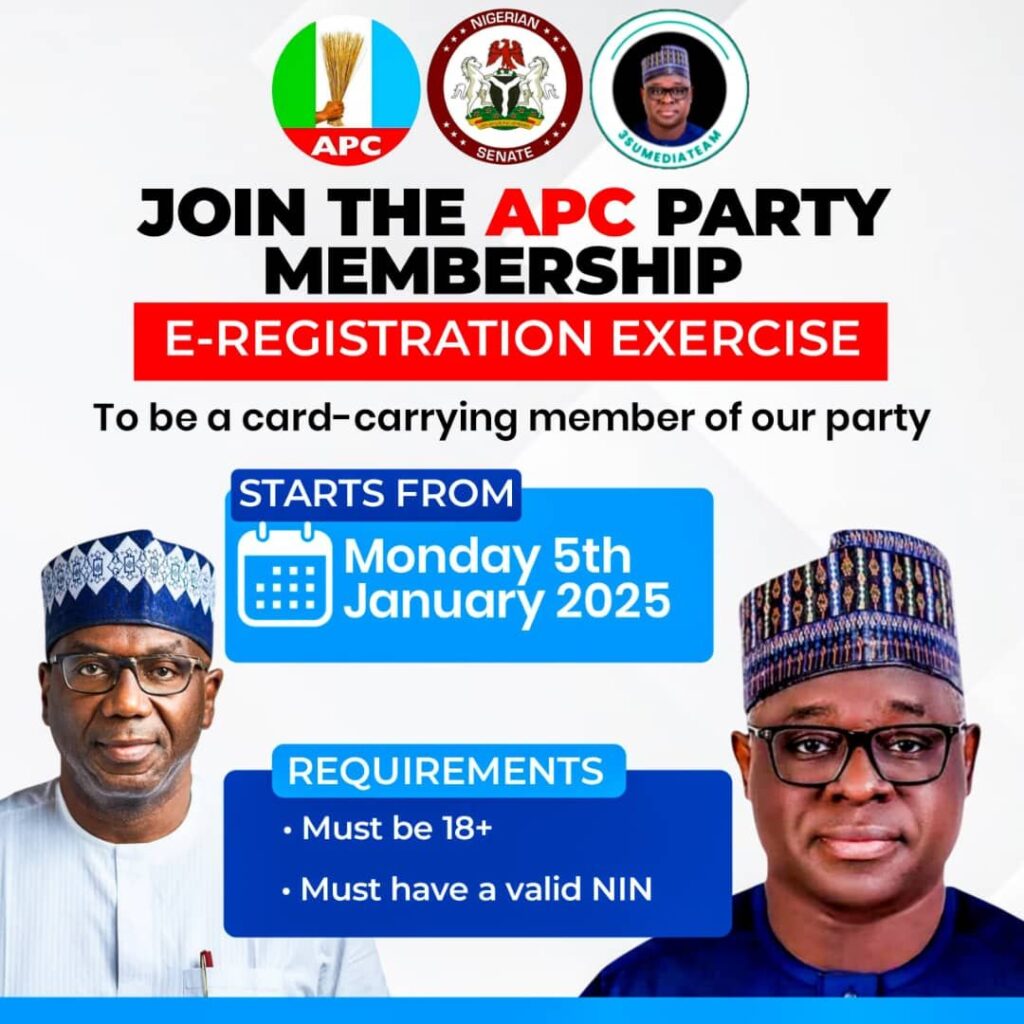 The Senator representing Kwara North Senatorial District, Distinguished Senator Sadiq Suleiman Umar, has called on Nigerians, particularly constituents across Kwara North and other parts of the country, to register en masse in the ongoing All Progressives Congress (APC) Membership E-Registration Exercise.