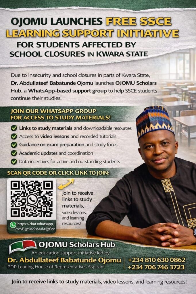 In direct response to the recent wave of school closures and academic disruptions across Kwara State, Dr. Babatunde Abdullateef Ojomu has announced the launch of the OJOMU Scholars Hub.