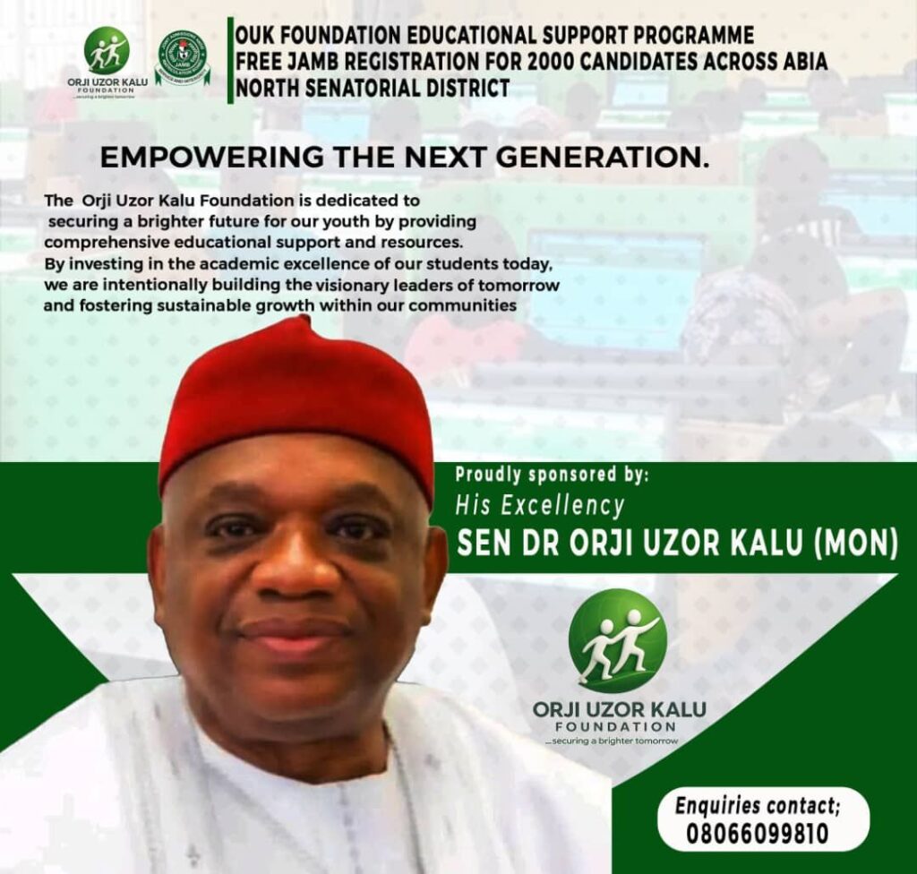 In a decisive effort to expand access to education and empower the next generation, the Orji Uzor Kalu (OUK) Foundation has unveiled a fully sponsored JAMB registration initiative for over 2,000 prospective candidates across Abia North Senatorial District.