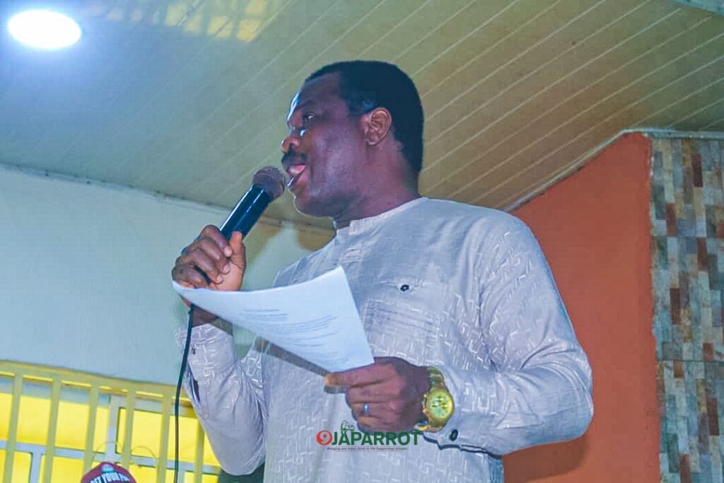 Representing the State Party Chairman, Rev. COS Fawenu (State Treasurer) debunked the narrative that the PDP party has fallen at the national level, describing it as a distraction strategy by the APC and has no effect on the State Party structures.