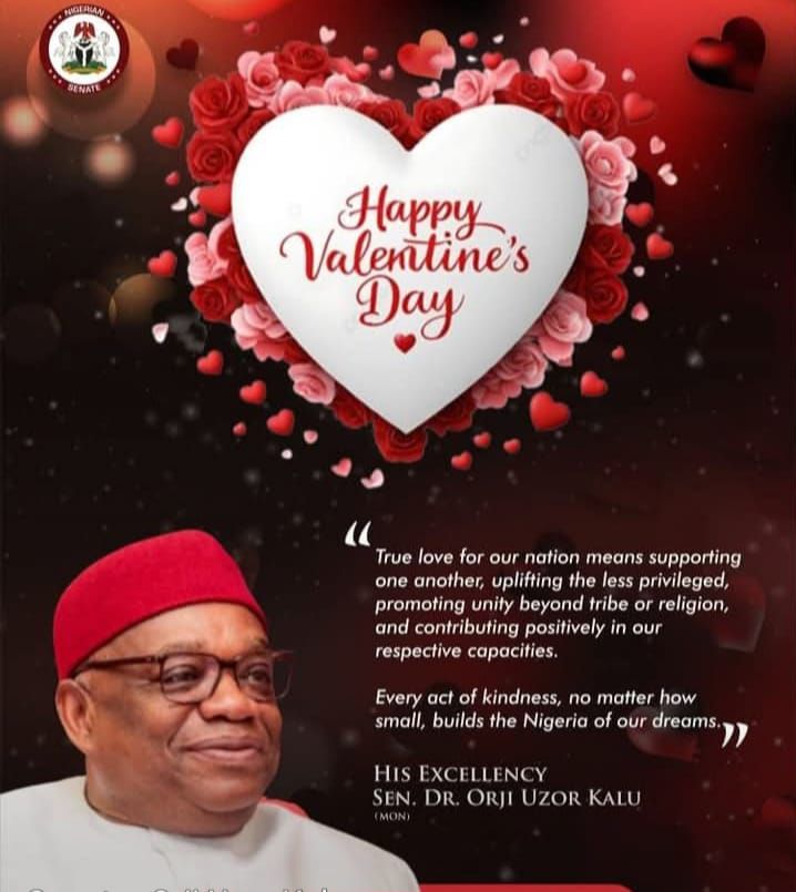 Valentine’s Day: Senator Orji Kalu Urges Nigerians to Embrace Unity, Love for Nation