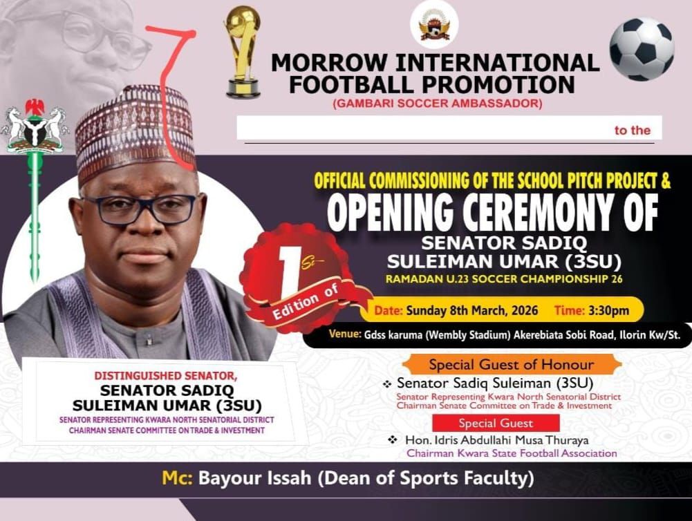 Senator Sadiq Umar Sponsors Maiden U-23 Ramadan Cup Football Competition in Kwara