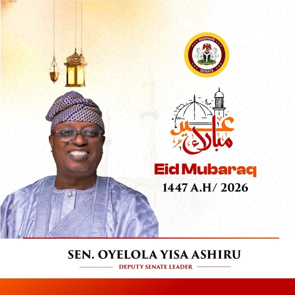 The Deputy Senate Leader, Oyelola Ashiru, has extended warm Eid-el-Fitr greetings to Muslims across Kwara South, Kwara State, and Nigeria at large, as the holy month of Ramadan comes to an end.
