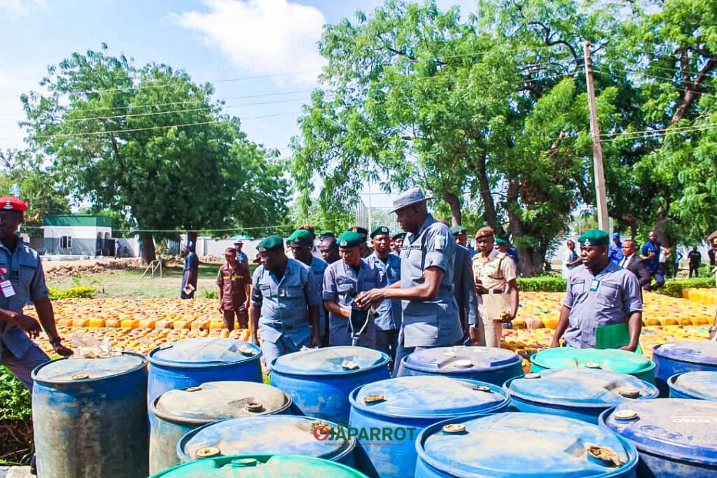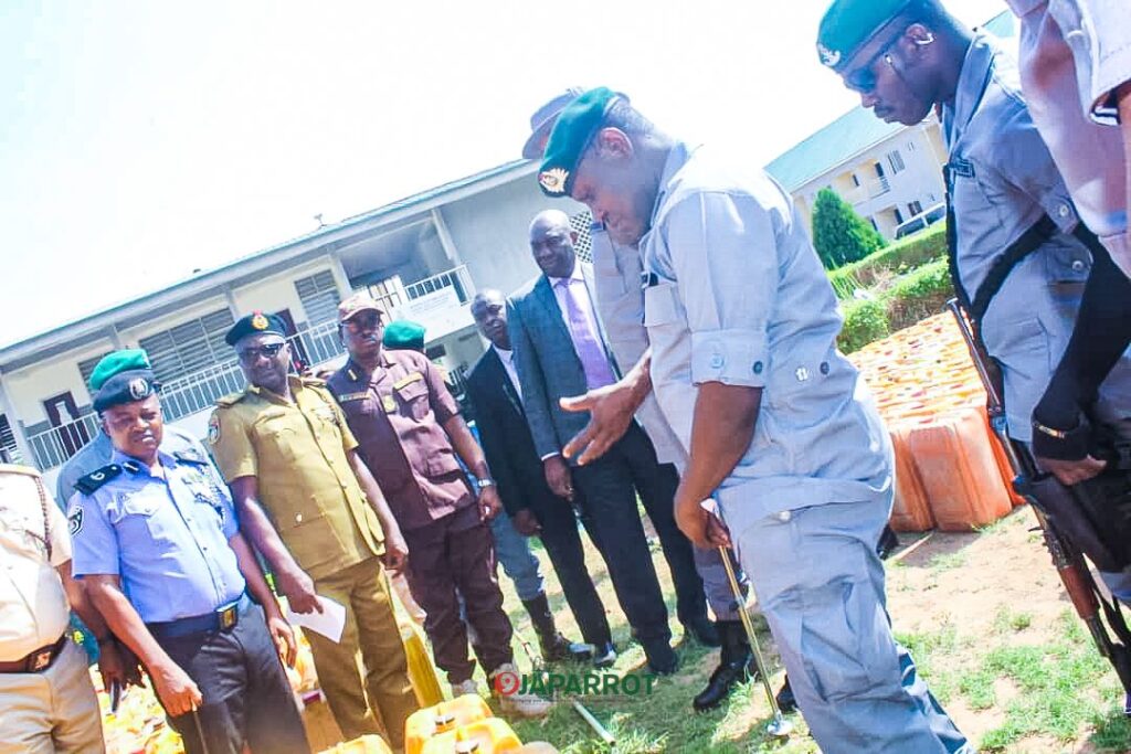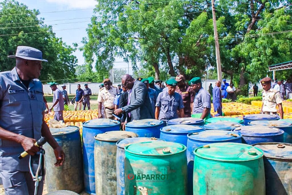 The National Coordinator Operations Whirlwind Deputy Comptroller of Customs Abubakar Aliyu, while addressing the press and stakeholders, revealed that the intercepted consignment consisted of 1,510 jerry-cans (25 litres each) and 30 drums (200 litres each). The seized products have an estimated Duty Paid Value (DPV) of N43.75 million.